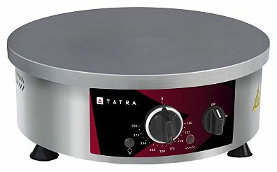 Блинница Tatra​ TCM R 40 предназначена для выпечки блинов на предприятиях общественного питания и торговли. Модель оснащена электромеханической панелью управления с терморегулятором и индикаторами питания и нагрева. Корпус выполнен из нержавеющей стали, жарочные поверхности имеют тефлоновое покрытие/