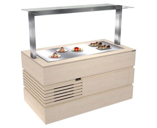 Буфет Техно-ТТ БМС-211/1286А предназначен для выкладки, кратковременного хранения и раздачи десертов и мороженого на предприятиях общественного питания и торговли. Модель оснащена нишей и открытой центральной полкой с подсветкой. Каркас выполнен из оцинкованной стали, фасад - из шпона и МДФ, столешница - из искусственного камня.