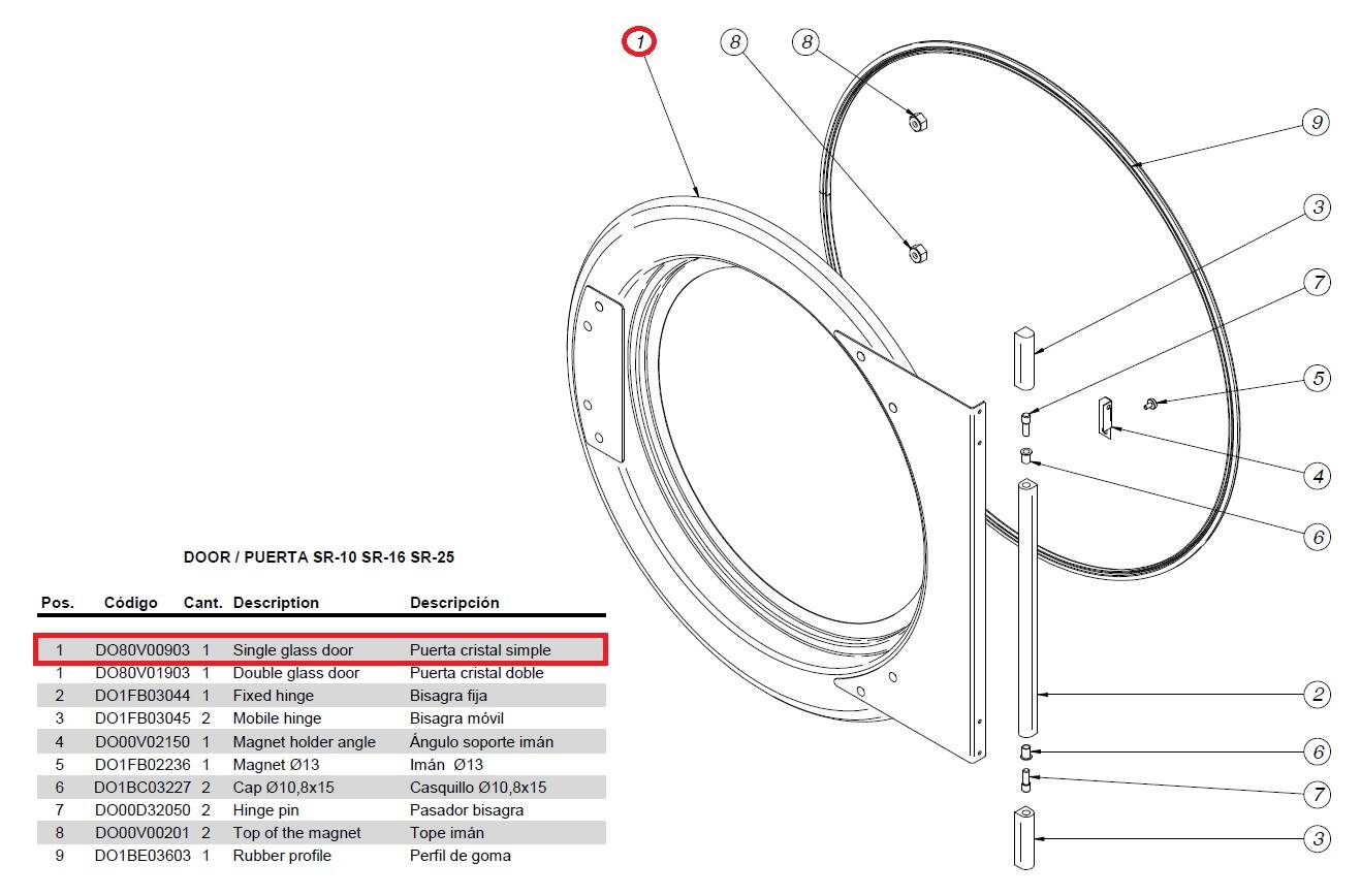 Дверь 12113683 (DO80V00903) для машины сушильной FAGOR, серии SR