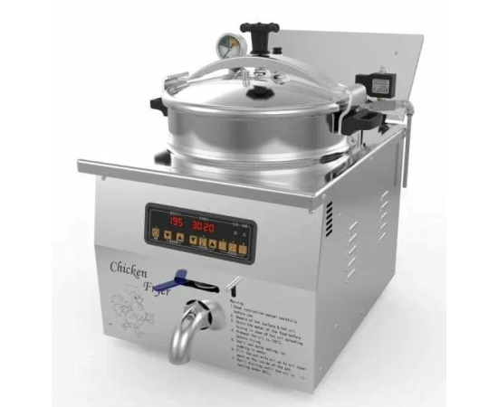 Настольная фритюрница CNIX MDXZ-16 используется на предприятиях пищевой промышленности, общественного питания и торговли для приготовления цыпленка в панировке, рыбы, овощей и других блюд во фритюре. Модель оснащена цилиндрической ванной с крышкой, устойчивыми нескользящими опорами, манометром, кнопочной панелью управления с 2 цифровыми дисплеями и светодиодными индикаторами. Корпус и ванна выполнены из высококачественной нержавеющей стали марки 304, рукоятки ванны и крышки – из термостойкого полимера.