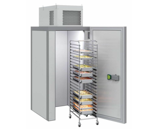 Камера холодильная POLAIR КХН-1,44 Minicella ММ без пола 1 дверь представляет собой высокоэффективное решение для охлаждения, хранения различных видов продукции, требующих определенного температурного режима. Модель используются в пищевой промышленности, медицине, фармацевтике, а также в торговле, логистике. Благодаря разборно/сборной конструкции может устанавливаться в самых узких местах производственных и торговых площадей. Занимает минимум площади, при этом имеет большой внутренний объём. Камеры поставляются в комплекте с холодильными машинами. Их можно без труда разобрать и перенести в другое нужное для использования помещение. Модульная система сборки панелей, выполненный в потолочной панели паз для монтажа моноблока, установленные стойки на внутренней стороне боковых панелях для размещения полок позволяют провести монтаж легко и быстро.