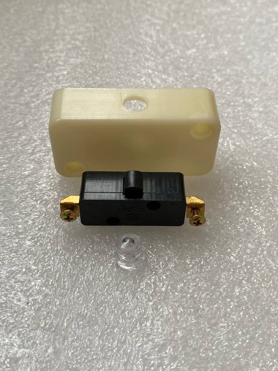 Изделие из пластмассы, размером 5 см на 2,5 см. С 2 медными контакторами внутри и кнопкой диаметром 0,7 см по середине. Рабочие напряжение 220 V. Предназначена для запуска оборудования путем замыкания сети контакторами.