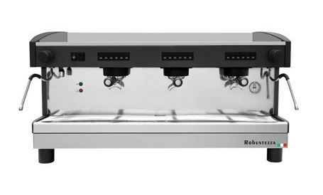 ROBUSTEZZA ST3E представляет собой автоматическую рожковую кофемашину. Модель рассчитана на применение в сфере общественного питания, позволяет готовить капучино, эспрессо и так далее. Высота расположения раздаточной группы упрощает и ускоряет процесс приготовления кофе на вынос. В конструкции предусмотрено 2 паровых крана, кран для подачи воды, встроенная роторная помпа, холдер, а также манометр для насоса и бойлера. В качестве материала изготовления корпуса и паровых кранов используется нержавеющая сталь. Боковины изготовлены из черного пластика.