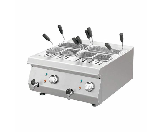 Макароноварка Kocateq 1M0CP1E ES используется на предприятиях общественного питания и торговли для отваривания и размораживания кукурузы, фрикаделек, макаронных изделий, пельменей, вареников, овощей, фруктов и прочих продуктов. Ванна выполнена из специальной стали толщиной 1,5 мм, декоративные ручки с накладками - из нержавеющей стали, поверхности, соприкасающиеся с продуктами, выполнены из нержавеющей стали AISI 304 толщиной 1 мм, дно и задняя стенка - из нержавеющей стали AISI 201 толщиной 1 мм.