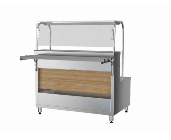 МариХолодМаш ПМПЭ11 представляет собой прилавок-мармит, предназначенный для использования в линии раздачи ШЕФ1120. Модель предназначена для демонстрации, а также кратковременного хранения готовых блюд, продуктов питания, посуды, напитков. В конструкции используются конфорки, полка со светодиодной подсветкой. Корпус изготовлен из нержавеющей стали.