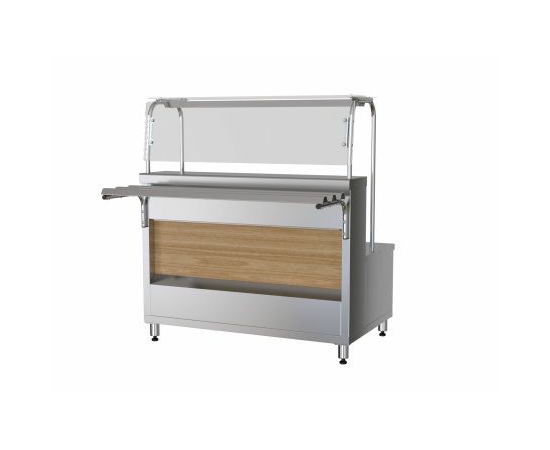 МариХолодМаш ПМПЭ15 представляет собой прилавок-мармит. Оборудование предназначено для поддержания в горячем виде первых блюд. Аппарат может использоваться в составе раздаточной линии ШЕФ 1500. Мармит подходит для предпродажной демонстрации, кратковременного хранения, раздачи блюд и посуды. Нагрев осуществляется за счет конфорки. Мармит оснащен полкой, светодиодной подсветкой, а также противокашлевым экраном. Для изготовления корпуса применяется нержавеющая сталь.