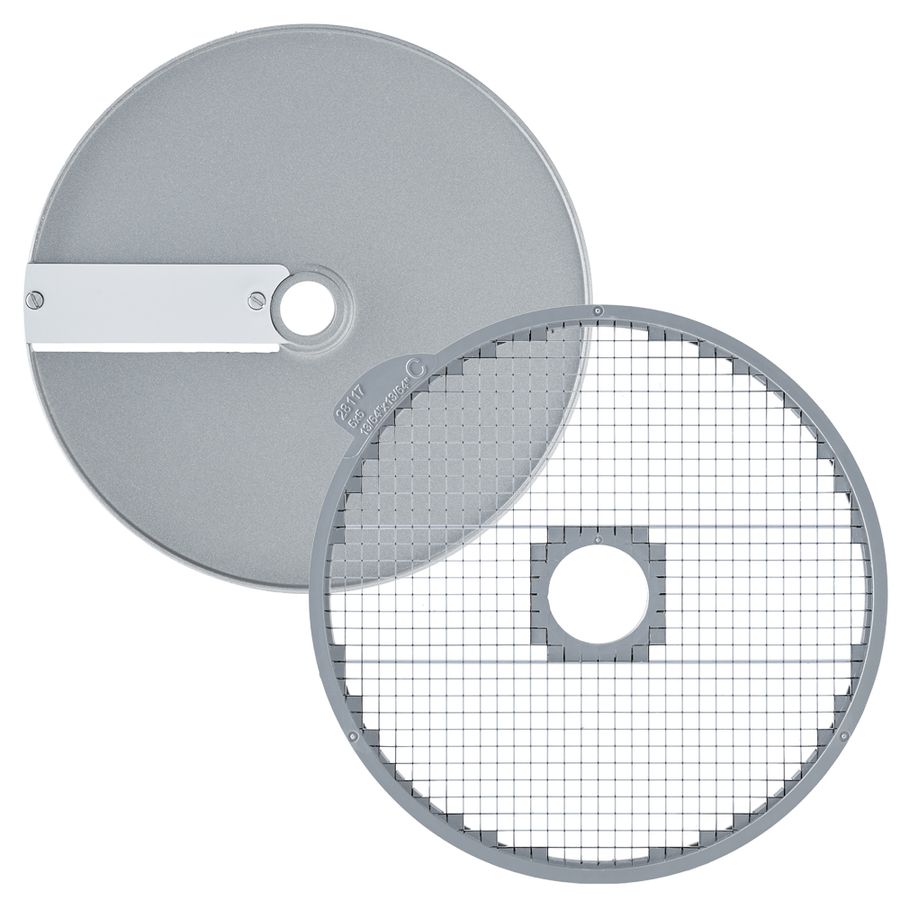 Диск режущий 5 мм предназначен для нарезки пищевых продуктов (овощей, фруктов, твердых сыров, колбас и других) кубиками 5х5х5 мм.