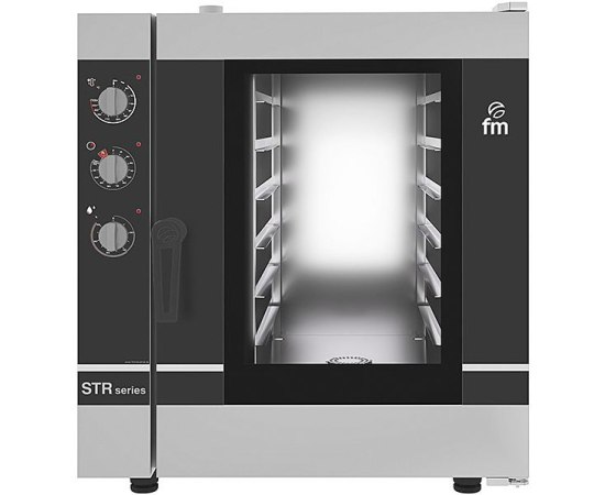 Пароконвектомат FM STR 606 M предназначен для выпекания различных кондитерских и хлебобулочных изделий, замороженных или предварительно выдержанных в расстоечном шкафу заготовок из теста на предприятиях пищевой промышленности, общественного питания и торговли. Модель оснащена универсальными направляющими, которые позволяют разместить противни и листы для выпечки. Корпус и камера выполнены из нержавеющей стали.