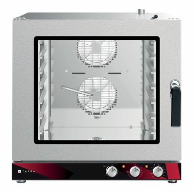 Пароконвектомат Tatra TC07M1L предназначен для обжаривания, приготовления на пару, бланширования, запекания и других видов тепловой обработки продуктов на предприятиях общественного питания и торговли. Модель оснащена электромеханической панелью управления и 2 реверсивными вентиляторами. Корпус и камера выполнены из нержавеющей стали, двойная дверь - из закаленного стекла.