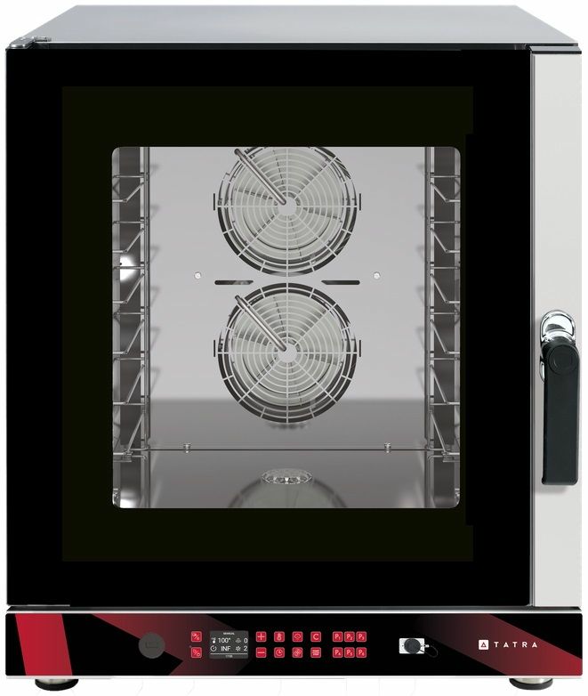 Пароконвектомат Tatra TPI 07 DC.5V предназначен для обжаривания, приготовления на пару, бланширования, запекания и других видов тепловой обработки продуктов на предприятиях общественного питания и торговли. Модель оснащена электронной панелью управления с LCD экраном, USB портом, термощупом, 2 реверсивными вентиляторами и галогеновой подстветкой. Корпус и камера выполнены из нержавеющей стали.