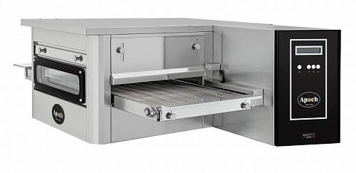 Конвейерная печь Apach AMT 65 предназначена для выпекания пиццы, хлебобулочных и кондитерских изделий, запекания овощей и других блюд на предприятиях общественного питания и торговли. Модель с электронной панелью управления оснащена вентилируемой камерой, электростатическим реле и боковой дверцей, позволяющей контролировать процесс приготовления. Корпус и конвейер выполнены из нержавеющей стали.
