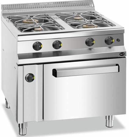 Плита 4 конф. Apach APRG-89FG —модель c повышенной мощностью горелок и высоким уровнем безопасности от нежелательного возгорания.