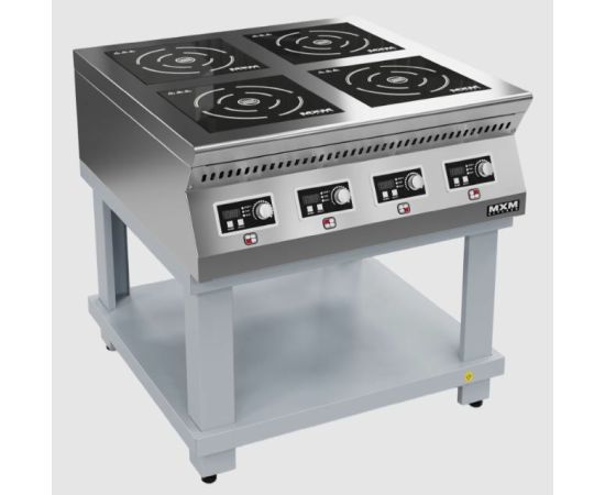 МариХолодМаш ПИ49П-5,0 представляет собой напольную индукционную плиту, предназначенную для приготовления разнообразных блюд с использованием наплитной посуды. На рабочей поверхности предусмотрено 4 индукционные конфорки размером 300х300 мм. В модели предусмотрена система защита от перегрева, а также регулируемые по высоте ножки. Плита установлена на подставку из окрашенной стали. В качестве материала изготовления рабочей поверхности используется стеклокерамика толщиной 6мм.