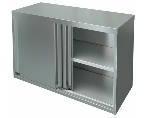 Кухонная полка Марихолодмаш ПЗК 800/400/600 предназначена для длительного хранения продуктов, посуды и инвентаря в закрытом объеме на предприятиях общественного питания. Модель оснащена дверцей-купе и внутренней полкой. Все детали выполнены из нержавеющей стали AISI 430 толщиной 0,6 мм.