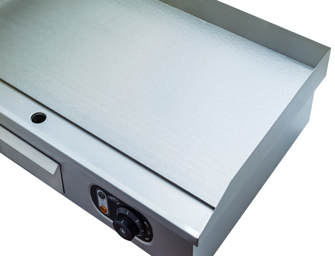 Жарочная поверхность Crazy Pan CP-EGR730L предназначена для жарки мясных, рыбных и овощных блюд на предприятиях общественного питания и торговли. Модель оснащена 2 терморегуляторами и жиросборником. Корпус выполнен из нержавеющей стали.