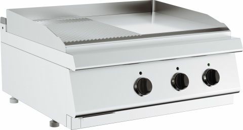 Электрическая жарочная поверхность Kusina G7I 220E-S – электрическая гриль-сковорода, разработанная специально для профессионального использования на предприятиях общественного питания. Предназначена для приготовления пищи путем непосредственного контакта с греющей чугунной поверхностью, что позволяет получать качественные результаты обработки полуфабрикатов из мяса, рыбы, овощей и прочего. Рабочая поверхность состоит из наполовину гладкой и наполовину рифленой стальной пластины. Предусмотрены 2 независимые друг от друга рабочие зоны, каждая из которых регулируется по отдельности. Оснащена бортиком толщиной 3 мм по трем сторонам, который предотвращает разливание жира и других жидкостей. Также имеется вместительный жиросборник, который собирает излишки жира и облегчает последующую очистку.