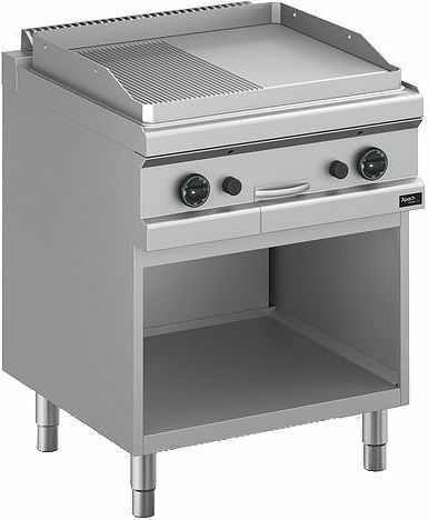 Открытая газовая сковорода Apach APTG-77PLR/PL 700-й серии предназначена для обжарки мяса, рыбы и овощей на предприятиях общественного питания и торговли. Модель с закругленными краями и бортами оснащена электромеханической панелью управления, горелками с пьезоэлектрическим поджигом и системой стабилизации пламени, выдвижным лотком для сбора остатков пищи, масла и жира и открытой подставкой с регулируемыми по высоте ножками.