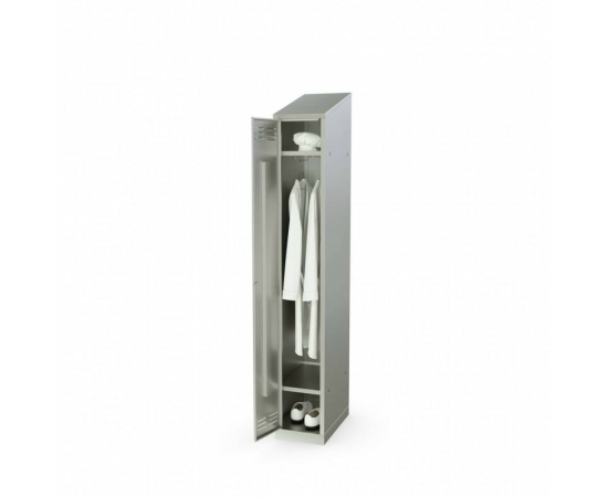 Атеси ШО-Б-1-300.500-02-Рпредназначен для хранения одежды и обуви работников предприятий общественного питания (общепита), а также личных вещей работников.