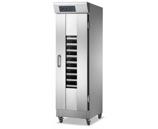 Расстоечный шкаф Kocateq YXD P32 используется на предприятиях общественного питания и торговли, в пекарнях и кондитерских для расстойки тестовых заготовок. Модель оснащена таймером, контроллером с кнопочным управлением, дверью с уплотнительной резинкой и смотровым окном, дренажным отверстием на дне камеры, подсветкой и колесами. Корпус выполнен из нержавеющей стали AISI 201 толщиной 0,6 мм.