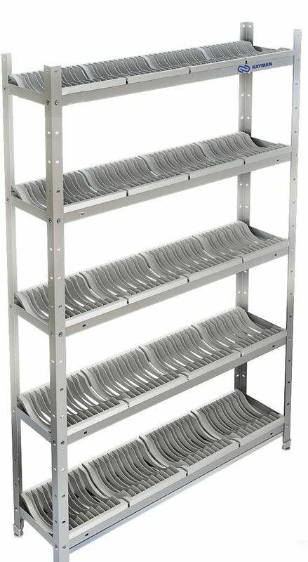 Стеллаж для сушки посуды Kayman СКТ-241/0603 (+) - используются в моечном отделении для сушки и кратковременного хранения чистой посуды. Стеллаж сделан из стоек и полок. Полка состоит из кассеты для тарелок и каркаса. Кассета представляет собой решётку с ячейками, в которые помещаются тарелки. Внизу стеллажа расположен поддон, предназначенный для сбора жидкости, поступающей с мокрой посуды.