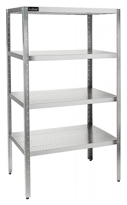 Стеллаж Кобор СКП-90/60 предназначен для хранения посуды, кухонной утвари и сухих продуктов на предприятиях общественного питания, торговли и в промышленно-производственных помещениях. Каркас выполнен в виде уголка 40х40 мм из оцинкованной стали, перфорированные полки - из нержавеющей стали AISI 430. Уникальная система крепления полок обеспечивает жёсткость конструкции стеллажа.
