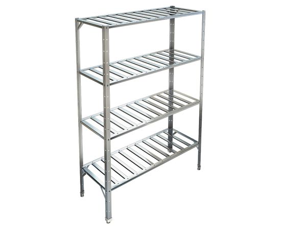 Кухонный стеллаж Техно-ТТ СТР-254/1004 предназначен для хранения посуды, различного инвентаря и сухих продуктов на предприятиях общественного питания и торговли. Модель оснащена регулируемыми по высоте полками и ножками, что позволяет компенсировать неровности пола. Разборный каркас выполнен из уголка 40х20 мм нержавеющей стали AISI 430 толщиной 1,2 мм, решетчатые полки - из нержавеющей стали AISI 304 толщиной 0,8 мм.