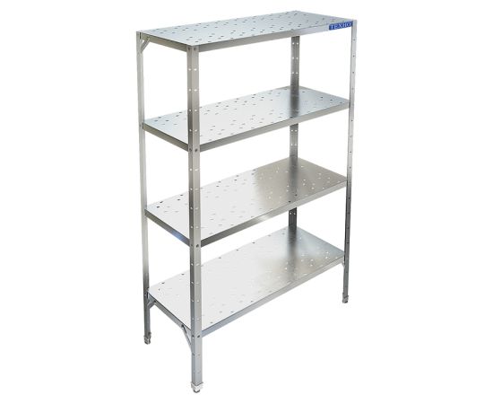 Кухонный стеллаж Техно-ТТ СТР-524/600 предназначен для хранения посуды, различного инвентаря и сухих продуктов на предприятиях общественного питания и торговли. Модель оснащена регулируемыми по высоте полками и ножками, что позволяет компенсировать неровности пола. Разборный каркас выполнен из уголка 40х40 мм из нержавеющей стали AISI 430 толщиной 2 мм, перфорированные полки - из нержавеющей стали AISI 430 толщиной 0,8 мм.
