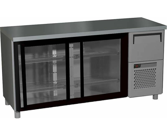 Стол барный Carboma T57 M2-1-C 9006-19 корпус серый, без борта, планка (BAR-360К) предназначен для кратковременного хранения гастрономической продукции, готовых холодных закусок и нарезок, ингредиентов для салатов и коктейлей, напитков. Может встраиваться в барную стойку или другую мебель. Стол совмещает функции холодильного шкафа и полноценного рабочего стола. Стол может использоваться как самостоятельная единица оборудования, так и встраиваться в барные стойки, глубиной от 600 мм.