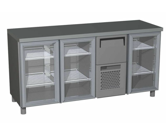 Стол барный Carboma T57 M3-1-G 9006-19 корпус серый, без борта, планка (BAR-360С) предназначен для кратковременного хранения гастрономической продукции, готовых холодных закусок и нарезок, ингредиентов для салатов и коктейлей, напитков. Может встраиваться в барную стойку или другую мебель. Стол совмещает функции холодильного шкафа и полноценного рабочего стола. Стол может использоваться как самостоятельная единица оборудования, так и встраиваться в барные стойки, глубиной от 600 мм.