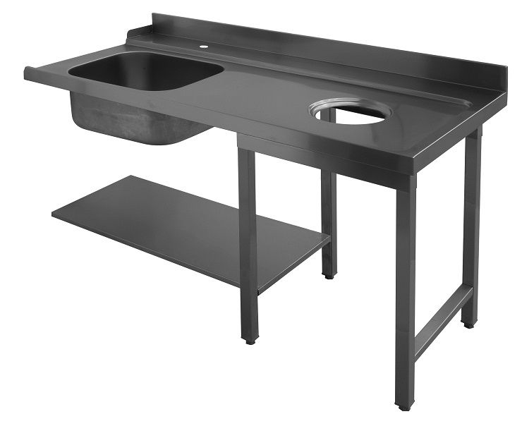 Левосторонний сортировочный стол с раковиной и отверстием для мусораИзготовлен из нержавеющей стали