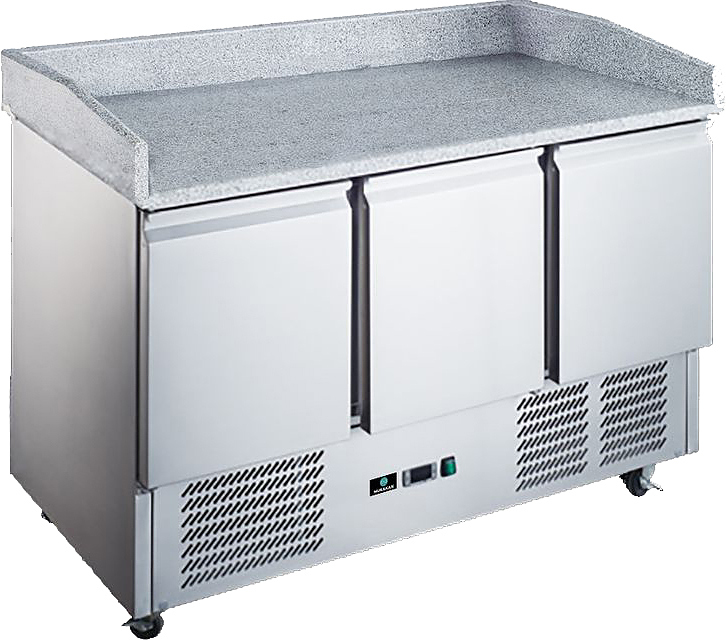 Стол для пиццы HURAKAN HKN-PZLG3F камень - предназначен для раскатки теста, хранения продуктов и обработки ингредиентов для приготовления пиццы на рабочей поверхности.