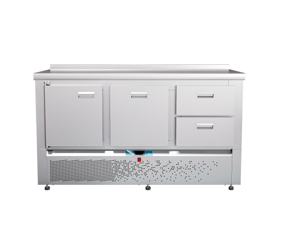 Стол холодильный Abat СХС-70Н-02 (дверь, ящики 1/2, ящик 1) с бортом предназначен для кратковременного хранения пищевых продуктов на предприятиях общественного питания и торговли. Рациональное использование рабочего пространства кухни за счет совмещения в одном изделии функции холодильного шкафа и рабочего стола.