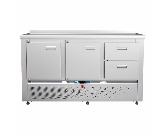 Стол холодильный Abat СХС-70Н-02 столешница 202 (дверь-дверь-ящик 1/2) с бортом предназначен для кратковременного хранения пищевых продуктов на предприятиях общественного питания и торговли. Рациональное использование рабочего пространства кухни за счет совмещения в одном изделии функции холодильного шкафа и рабочего стола