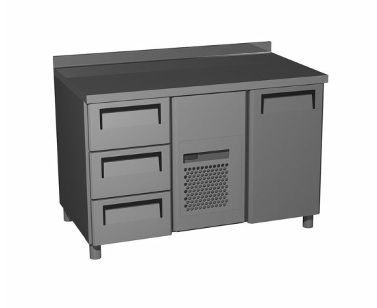 Холодильный стол Сarboma T70 M2-1 0430 (2GN/NT 31) предназначен для раскатки теста, обработки ингредиентов для приготовления блюд, охлаждения и кратковременного хранения скоропортящихся продуктов и напитков на предприятиях общественного питания и торговли. Модель оснащена 2 полками, 3 расположенными слева ящиками и регулируемыми ножками высотой от 90 до 110 мм. Цельнозаливной корпус выполнен из нержавеющей стали с теплоизоляцией из пенополиуретана, дверцы - из металла.