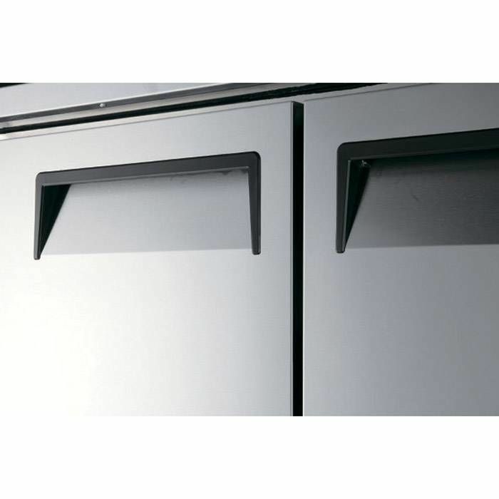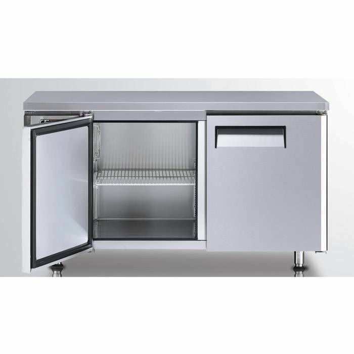 Холодильный стол Turbo air KUR15-2 предназначен для раскатки теста, обработки, охлаждения и кратковременного хранения продуктов и напитков на предприятиях общественного питания и торговли. Модель оснащена 2 полками. Корпус выполнен из нержавеющей стали (гальванизированная сталь на оборотной стороне и внизу) с применением пожаробезопасных стенок толщиной 60 мм, уплотнения - из АБС-пластика (акрилонитрилбутадиенстирола), не пропускающего конденсата, пол - из нержавеющей стали с алюминиевыми вставками по бокам и сзади оборудования, тройные направляющие - из высококачественной нержавеющей стали.