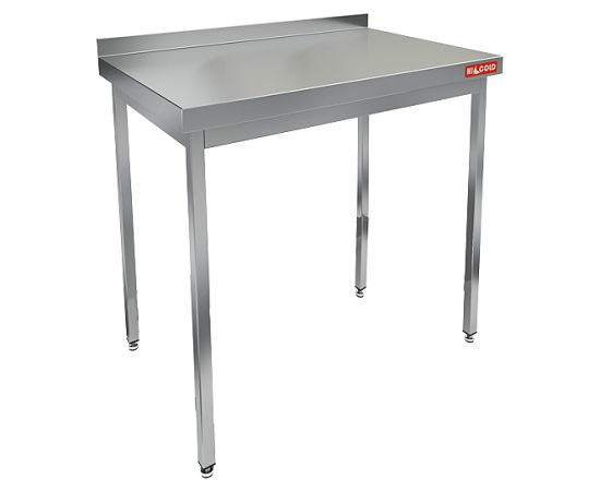 Столешница выполнена из нержавеющей стали толщиной 0,8 мм, усилена листом ДСП, опорные ножки - из трубы 40х40 мм из нержавеющей стали.