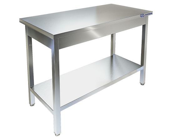 Производственный стол KAYMAN СЦ-222/1608 используется на предприятиях общественного питания и торговли для раскатки теста и обработки ингредиентов для приготовления блюд, а также как дополнительное место для установки и хранения кухонных приборов, инвентаря и сухих продуктов. Каркас выполнен из нержавеющей трубы AISI 430 40х40 мм толщиной 1.2 мм, столешница - из нержавеющей стали AISI 430 толщиной 0,8 мм, усилена листом ЛДСП толщиной 16 мм.