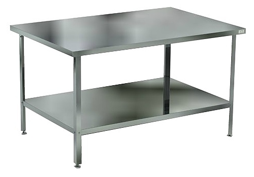 Столешница стола Koбор СП-150/60/430 используется на предприятиях общественного питания и торговли для разделывания и обработки пищевых продуктов, а также в качестве вспомогательной поверхности для кухонного оборудования. Каркас выполнен из уголка нержавеющей стали, столешница и полка - из нержавеющей стали AISI 430, столешница укреплена листом ламинированной древесностружечной плиты с внутренней стороны.