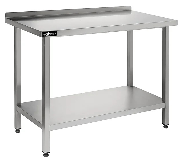 Столешница стола Koбор СПБ-120/60 используется на предприятиях общественного питания и торговли для разделывания и обработки пищевых продуктов, а также в качестве вспомогательной поверхности для кухонного оборудования. Каркас выполнен из квадратной трубы 40х40 мм нержавеющей стали, столешница и полка - из нержавеющей стали AISI 430, столешница укреплена листом ламинированной древесностружечной плиты с внутренней стороны.