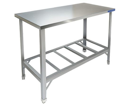 Производственный стол Техно-ТТ СП-813/1800 предназначен для разделки и обработки пищевых продуктов, а также для расстановки и хранения посуды и кухонного инвентаря на предприятиях общественного питания и торговли. Модель оснащена регулируемыми по высоте ножками, что позволяет компенсировать неровности пола. Разборный каркас выполнен из уголка 40x40x2 мм, покрытого серой порошковой краской, столешница и сплошная полка-накладка - из нержавеющей стали AISI 430.