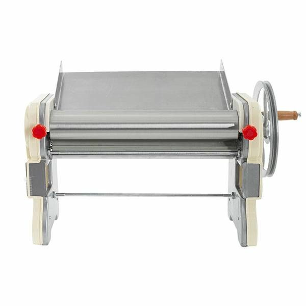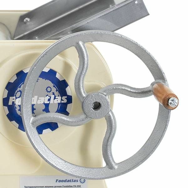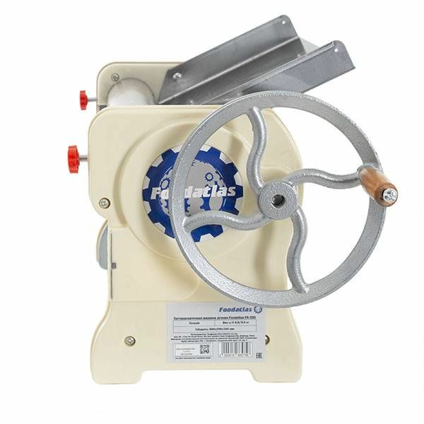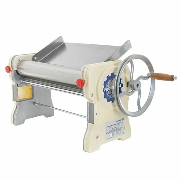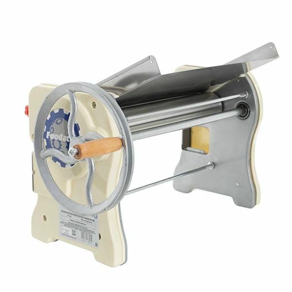 Ручная тестораскаточная машина Foodatlas FA-350 предназначена для раскатки дрожжевого, слоеного, песочного и крутого теста для приготовления макаронных изделий, пиццы, пирожков, пельменей, вареников, мантов, чебуреков и клецок в пекарнях, кулинарных студиях, столовых и на других небольших предприятиях общественного питания и торговли, а также в домашних условиях. Модель оснащена верхними и нижними раскаточными валами, приемочным лотком, устойчивыми опорами и расположенным справа круглым маховиком управления с рукояткой. Корпус выполнен из нержавеющей стали с внешними боковыми панелями из АБС-пластика, валки – из высококачественной нержавеющей стали, прочие соприкасающиеся с продуктом компоненты – из никелированной стали, упаковка – картонная коробка.