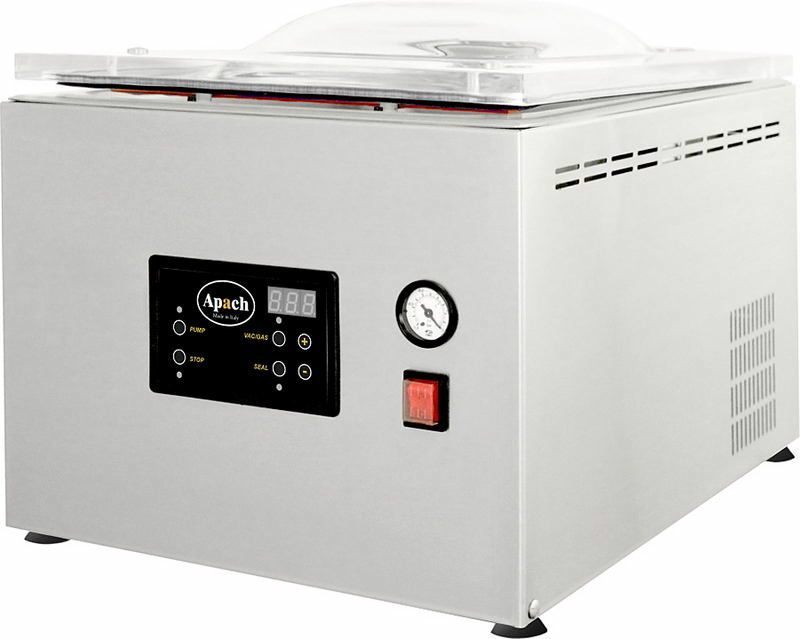 Вакуумный упаковщик Apach AVM312 используется на предприятиях общественного питания и торговли для упаковки различных продуктов в специальных пакетах для увеличения срока их хранения. Модель оснащена модулем газонаполнения, влагозащищенной электронной панелью управления с дисплеем, полностью автоматическим циклом упаковки и бесшовной камерой с закругленными углами, что облегчает процесс чистки. Корпус и камера выполнены из нержавеющей стали.