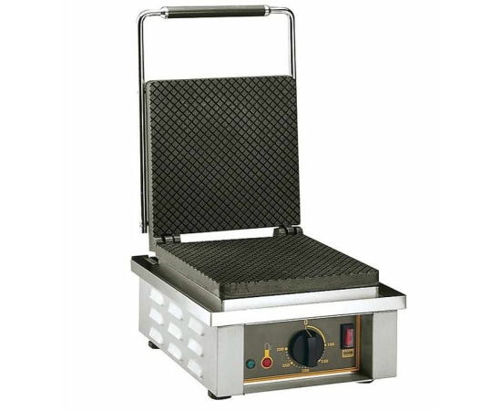 Вафельница Roller Grill GES 40 используется в домашних условиях, на предприятиях общественного питания и торговли для выпекания тонких вафель с мелким рисунком. Модель оснащена съемным поддоном для сбора избыточного теста. Корпус выполнен из нержавеющей стали, поверхность - из чугуна, ручки - из термостойкого материала.