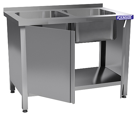 Моечная ванна КАМИК ВМ-2-451460 используется на предприятиях общественного питания и торговли для мойки посуды, овощей и фруктов. Сварной каркас и столешница выполнены из нержавеющей стали AISI 430, цельнотянутая емкость - из нержавеющей стали AISI 304.