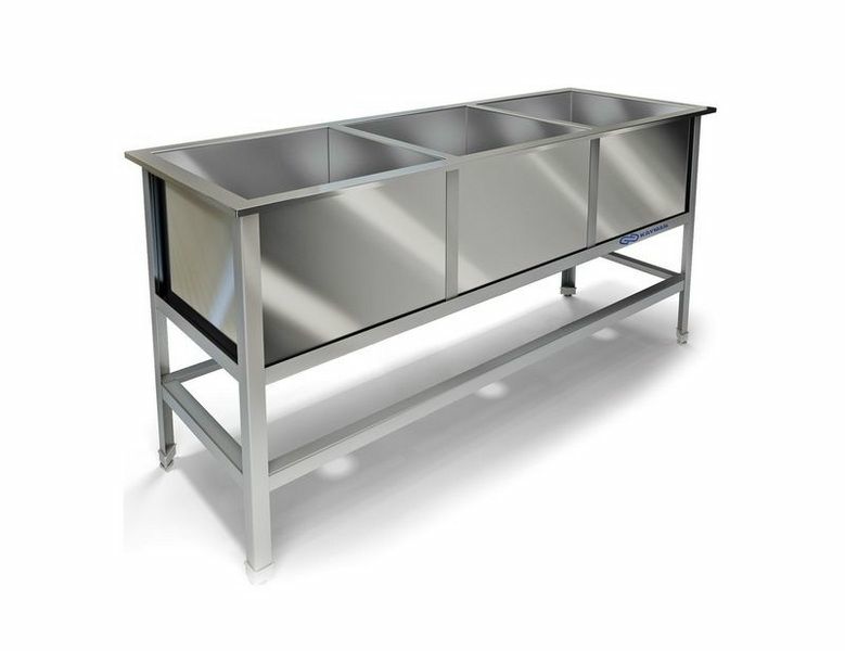 Моечная ванна KAYMAN ВМ-413/700 используется на предприятиях общественного питания и торговли для мойки продуктов питания, посуды и кухонных принадлежностей. Каркас выполнен из оцинкованного уголка, емкость - из нержавеющей стали AISI 304.