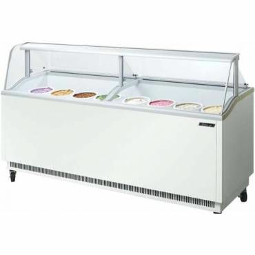Витрина для мороженого Turbo air TIDC-91W используется на предприятиях общественного питания и торговли для демонстрации и хранения мороженого. Система креплений для контейнеров с мороженым выполнена из винилового покрытия, гладкая изогнутая крышка - из стекла.