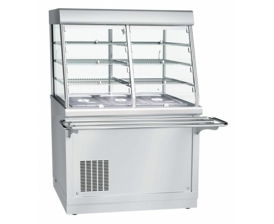 Холодильная витрина Abat ПВВ(Н)-70Х-С-НШ используется в составе линии раздачи HOT-LINE на предприятиях общественного питания и торговли для кратковременного хранения, демонстрации и раздачи холодных закусок, третьих блюд и охлажденных напитков потребителю. Модель оснащена 3 вместительными полками и охлаждаемой ванной с гастроемкостями. Корпус и панели выполнены из нержавеющей стали.