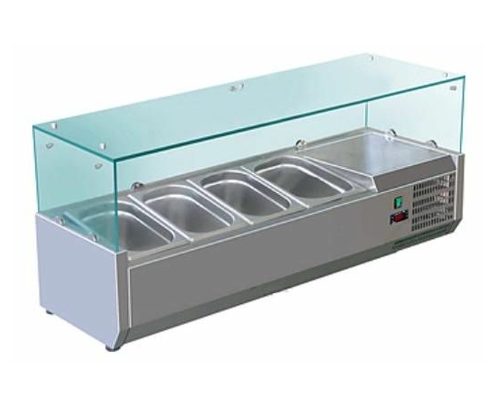 Холодильная витрина Koreco VRX 1200 395 WN предназначена для демонстрации, охлаждения и кратковременного хранения салатов, закусок, ингредиентов для пиццы и т.д. на предприятиях общественного питания и торговли. Теплоизолированный корпус выполнен из нержавеющей стали AISI 201, крышка - из закаленного стекла со специальным крепежом.