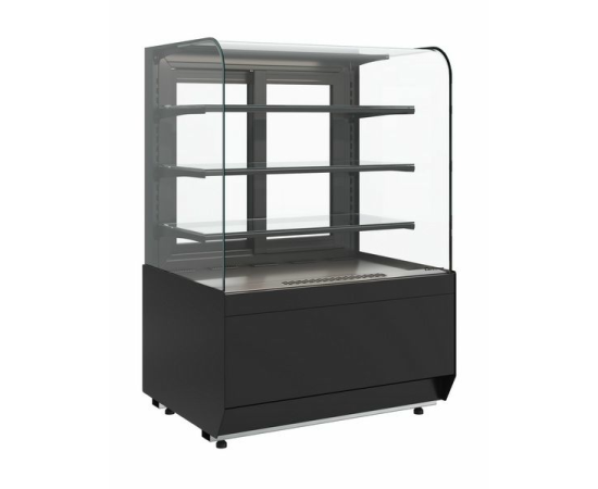 Витрина нейтральная напольная Carboma KR70 N 0,9-1 LIGHT (9005) предназначена для кратковременного хранения и демонстрации готовых блюд и напитков. Рекомендуется к применению в пекарнях, кондитерских, супермаркетах и на других предприятиях торговли и общественного питания. Модель оснащена 3-х сторонним радиусным безрамным остеклением и раздвижными задними створками. Радиусное фронтальное стекло обеспечивает полный обзор продукции на всех полках, а также позволяет создать торговый ряд без стыков.